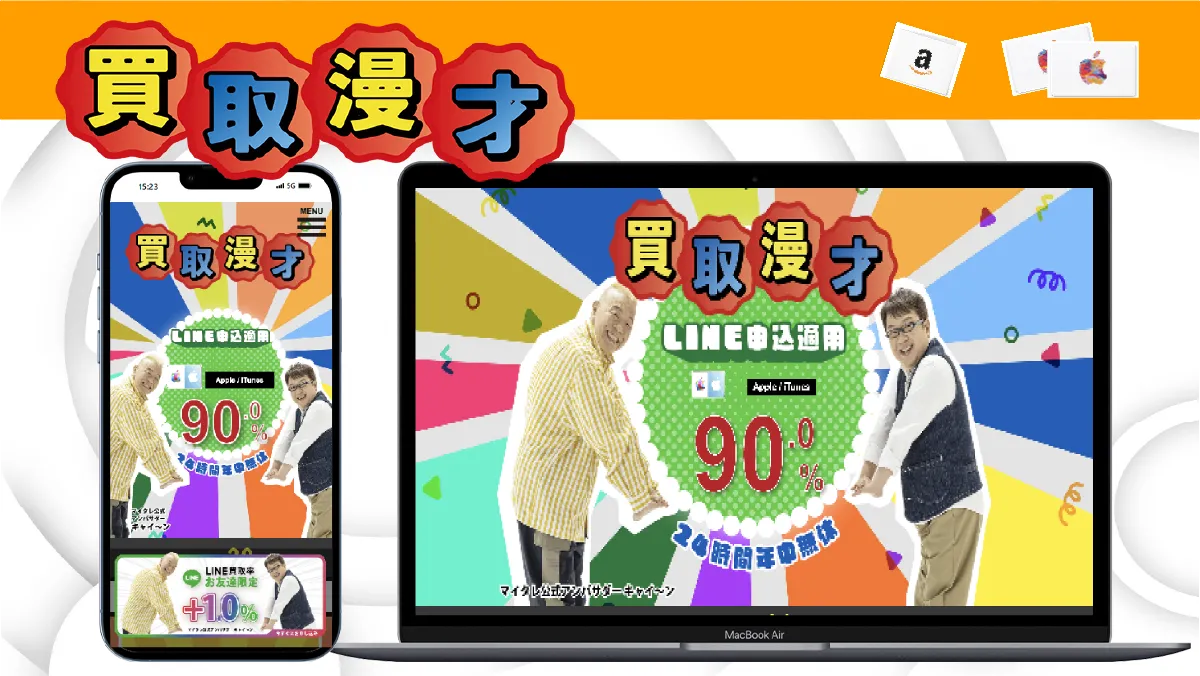 買取漫才は、数年前にリリースした買取サイトですが、振込速度の速さや買取率の高さ、ユーザーへの親身な対応が評価され再度人気の買取サイトえと上り詰めました。
