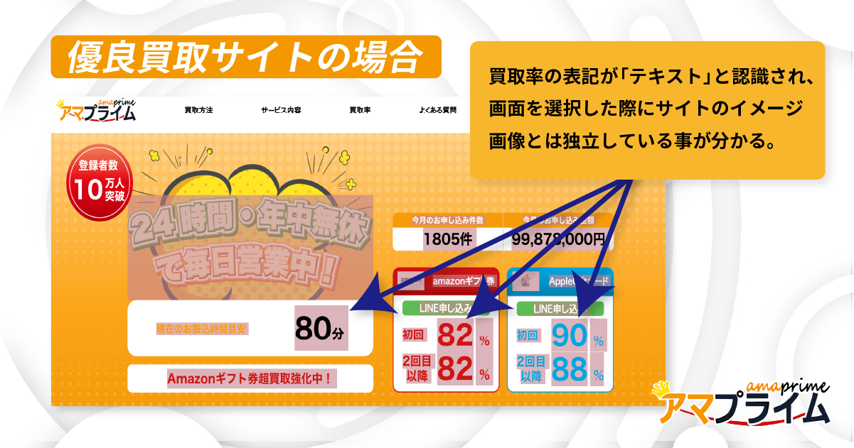 • 方法②:買取率表記がイメージ画像で作られているか確認する【具体例を画像解説】
