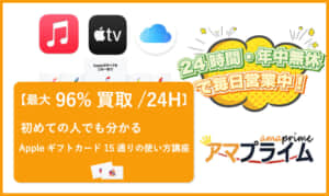 アマプライムでAppleギフトカードの申込を行えば平均買取率90%、最大買取率99%で買取する事も可能です。