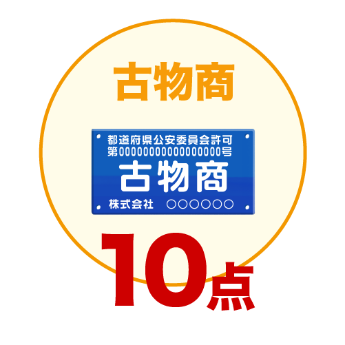 ![]() | 古物商許可を取得しているか、買取サイトに掲載しているかを10点満点で評価 |