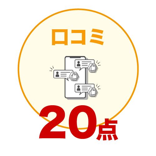 ![]() | ユーザーが実際に利用した口コミ評価が高いかを20点満点で評価 |