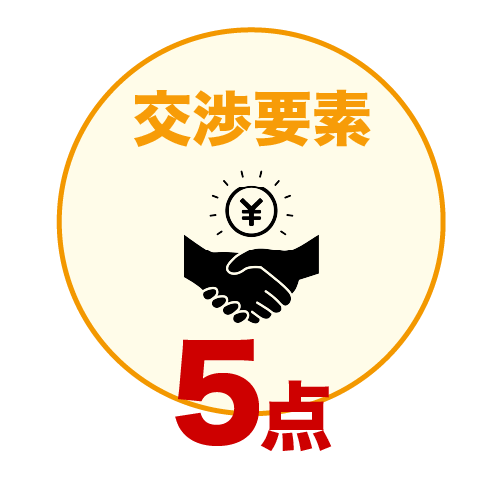 ![]() | リピーターや大口申込の人が買取率の交渉が出来るかを5点満点で評価 |