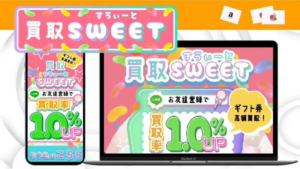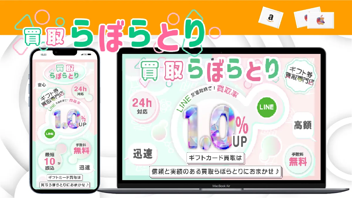 もちろん、アマプライムは上記のような詐欺サイトの特徴には一切該当しませんので、Appleギフトカードを安心して現金化していただけます。さらに当社では、LINEから買取申込を行った場合に買取率を常時1%上乗せし、最大で3%アップする特典をご用意しております。いつでも他社より有利な高価買取が可能です。