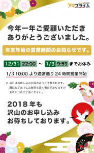 9時〜22時(月末月初3日までは24時間営業) 年中無休